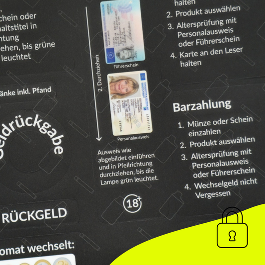 Stickerbogen Komplettset Snackautomat Indoor/Outdoor mit UV- Schutzlaminat